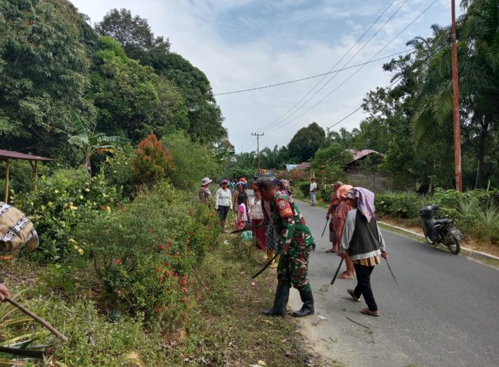 TAPTENG_Babinsa Koramil 01/Barus Koptu James Siregar,melaksanakan giat gotong royong bersama-sama masyarakat di wilayah binaannya dalam rangka TNI...