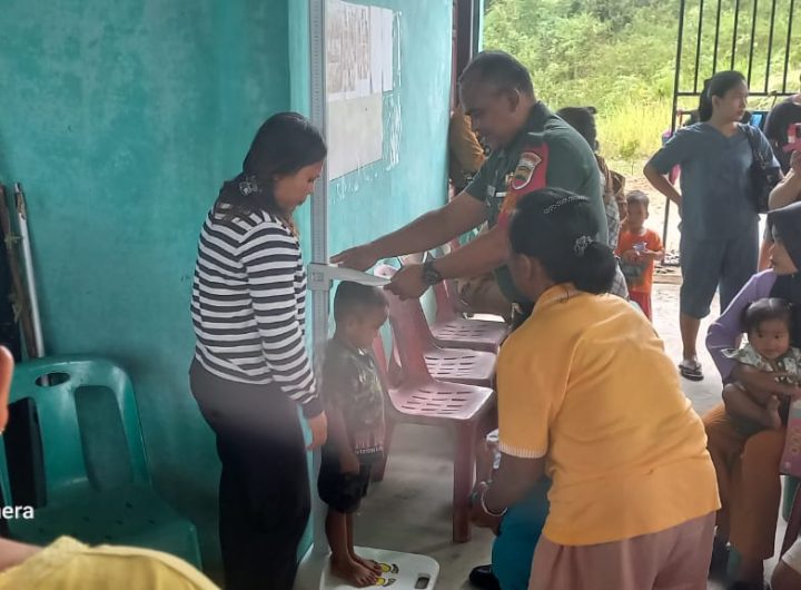 TAPTENG_Babinsa Koramil 05/Kolang, Serka Agus Triono melaksanakan pendampingan kegiatan Posyandu Akbar serta Pembagian susu bagi balita dan...
