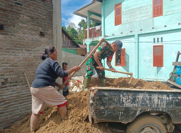 TAPTENG_Dalam membina kebersamaan dengan warga binaan,Babinsa Koramil 02/Sorkam Serda Jhon Banjarnahor. melaksanakan kegiatan Gotongroyong bersama warga. di...