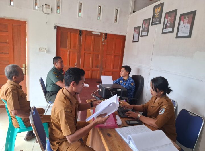TAPTENG _Babinsa Koramil 05/Kolang Kodim 0211/TT Serda Benny Sitompul bersama Bhabinkamtibmas melaksanakan Komsos dengan perangkat Desa di...