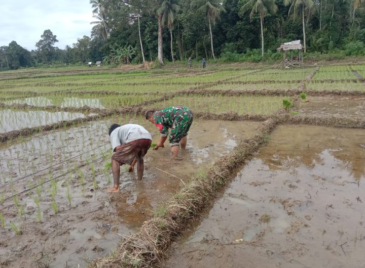 Tapteng-Guna percepatan masa tanam, Babinsa Koramil 04/Pinangsori Kodim 0211/Tapanuli tengah Sertu Horas P Nainggolan bersama masyarakat pemilik...