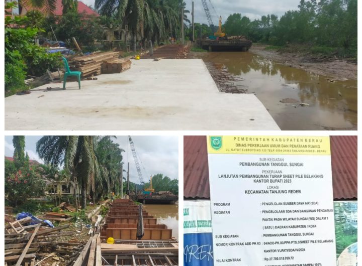 Tanjung Redeb,Berau – Kegiatan Pembangunan Tanggul Sungai penurapan (Sheet Pile) belakang kantor Bupati Berau TA 2023, senilai...